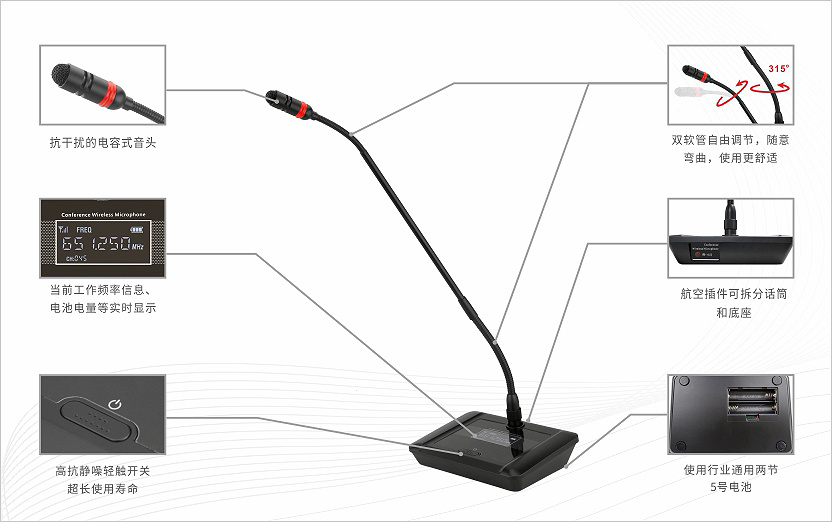 频率响应: 40 ~ 18 KHz发射参数(会议话筒)